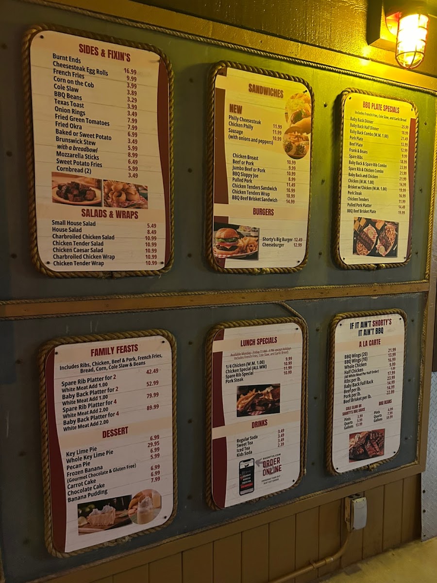 To accompany your main dishes, refreshing salads like the Chix Tend Salad delight with crispy chicken tenders and fresh greens. With friendly service, a nostalgic atmosphere, and generous portions, Shorty's BBQ guarantees a memorable dining experience for families and barbecue lovers alike.
